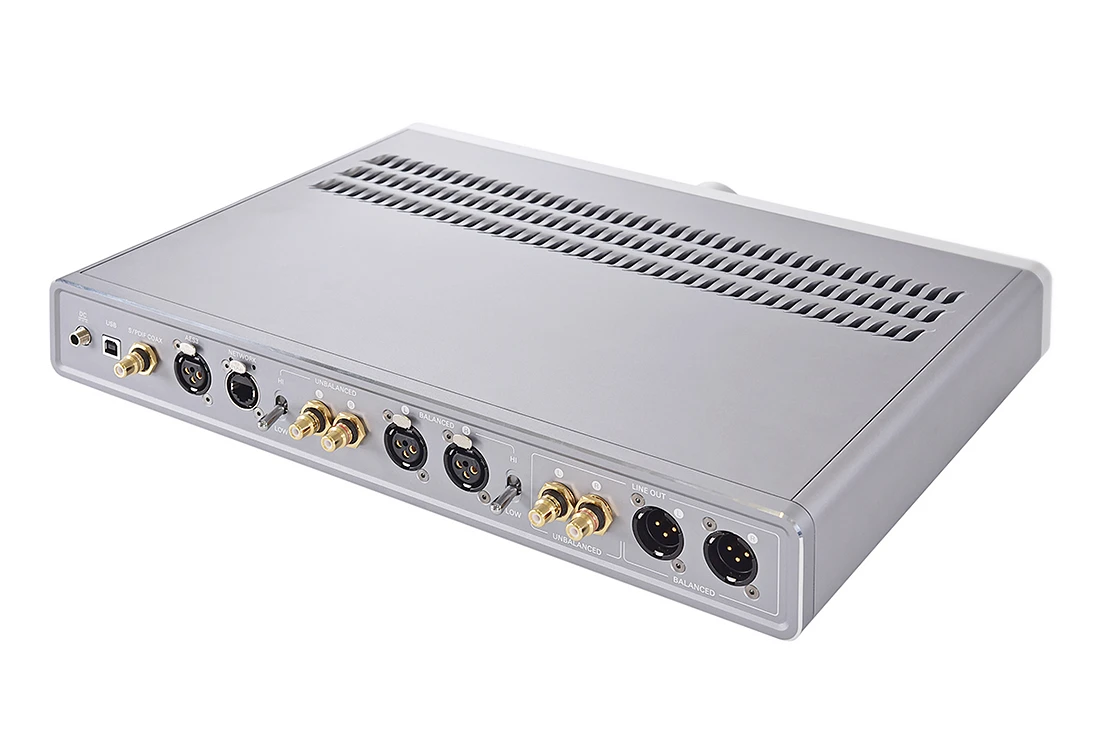 - Síťový (Ethernet) digitální vstup: RJ45; kompatibilní s DLNA; podporuje formáty až 32bit/384 kHz (PCM) a DSD64/DSD128/DSD256 prostřednictvím DoP nebo nativně